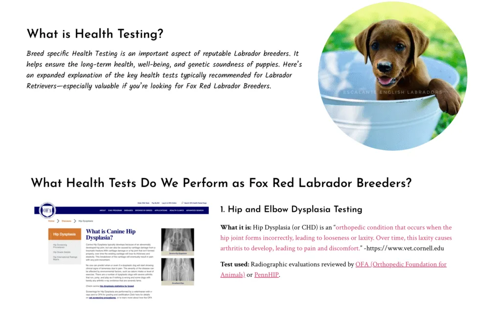 English Labradors are known for being healthy and living long, happy lives, typically averaging 10 to 12 years. When you choose an Escalante Lab, you’re not just getting a puppy—you’re getting one from a responsible breeder who puts a focus on health and well-being. We ensure all of our puppies undergo health testing and are raised in a nurturing environment, with proper care and attention to their health. You’ll also receive detailed health records, including vaccination and deworming information, and all our puppies are checked by a licensed veterinarian before they join their new homes.