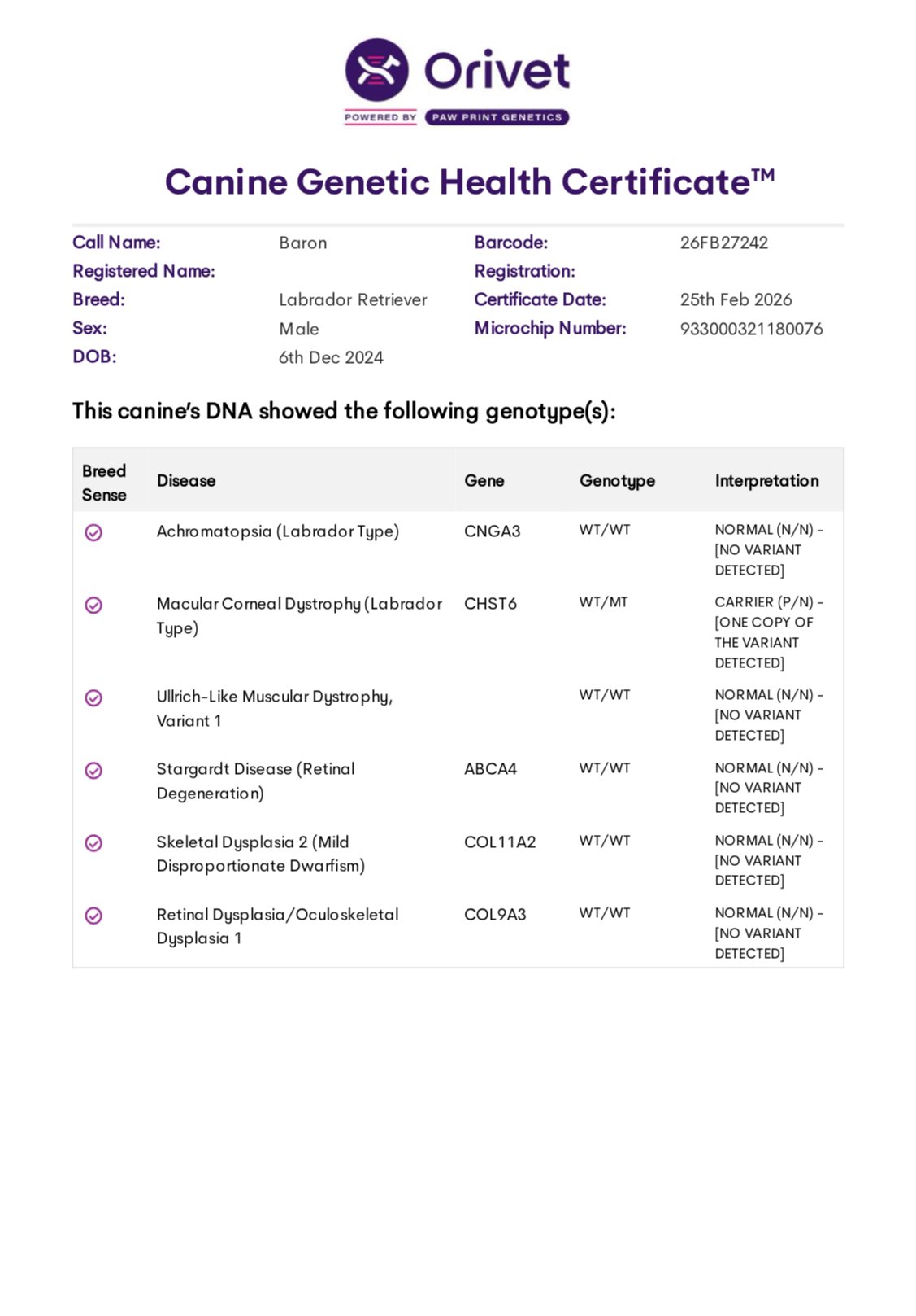 Why it matters: Carriers (one copy) can be bred to non-carriers to avoid affected puppies. Mating a carrier dog to a carrier, or an affected dog is putting the health of future puppies at risk.